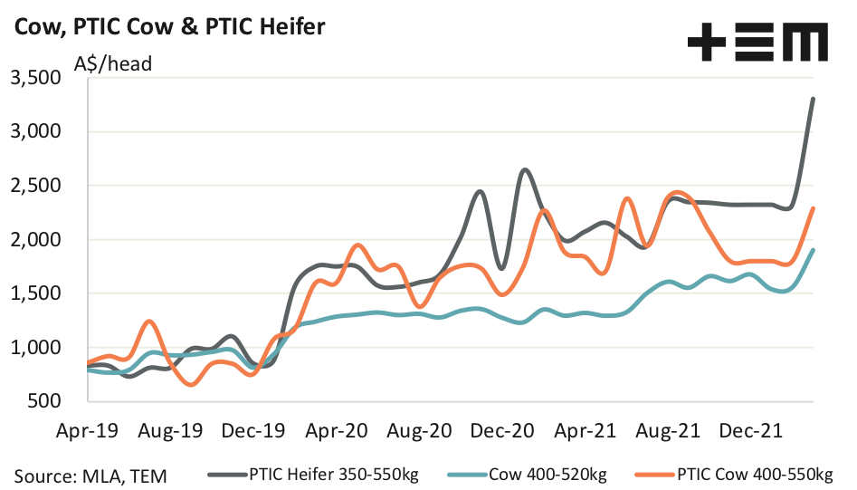 - PTIC Heifer pricing has seen a 298% increase in value since mid-2019. PTIC Cow values have lifted 166% over the same time frame.