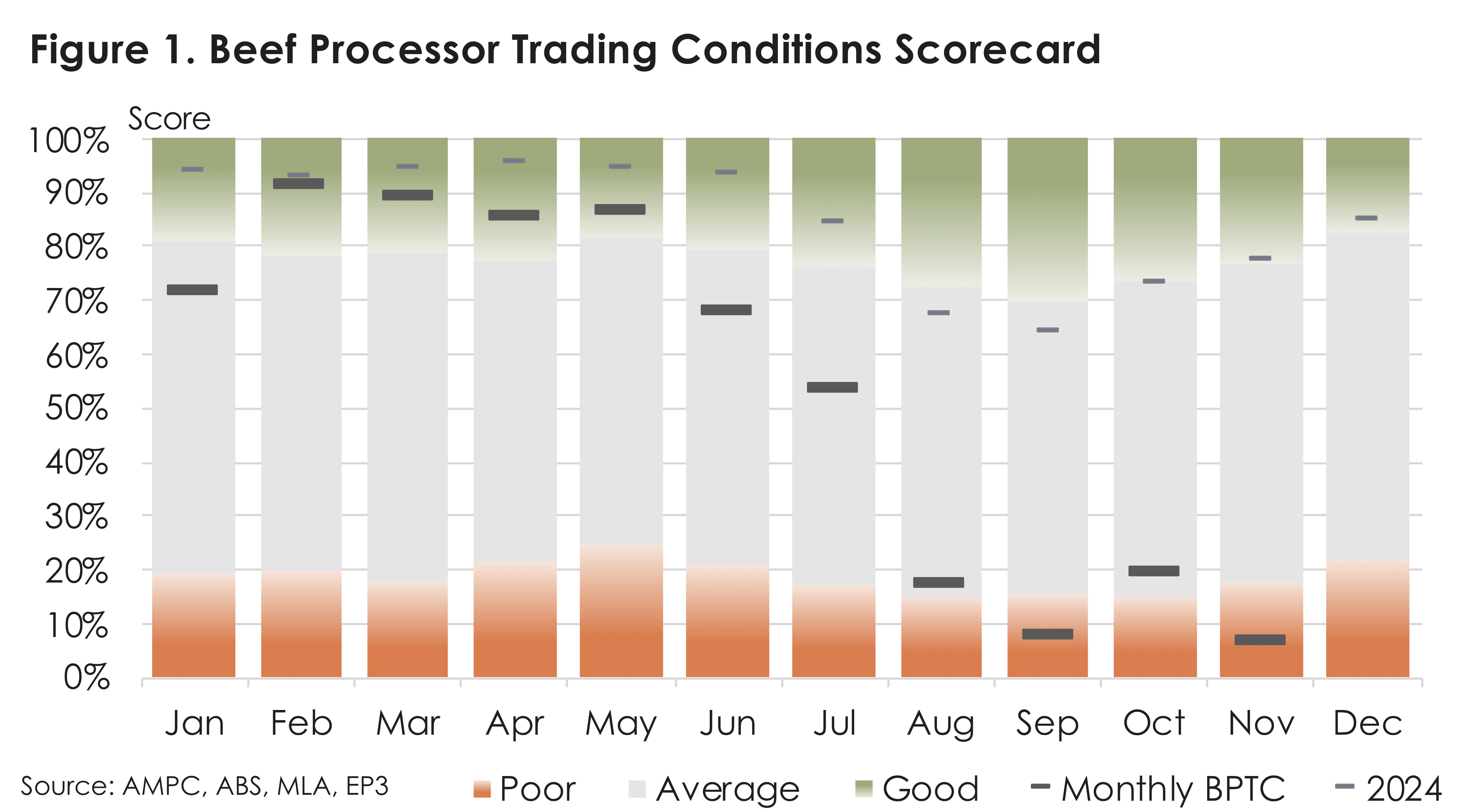 The November movements illustrate the core dynamic driving the latest decline in processor trading conditions. Livestock input costs rose sharply across all categories at a time when export and domestic selling prices were only edging higher on balance. The result was a renewed squeeze on margins and a further softening in the BPTC index for the month. The data reinforces the sensitivity of processor profitability to rapid changes in cattle markets and highlights how even modest shifts in export and retail returns can be overwhelmed when procurement costs move higher in a concentrated period.
