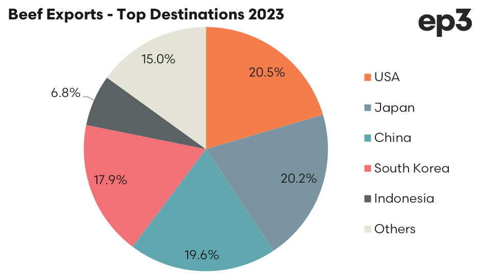 A summary for the top four beef export destinations is outlined below.