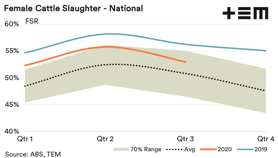 - The female slaughter ratio (FSR) for the September quarter is 53%, bringing the annual average FSR for 2020 to 53.7%.