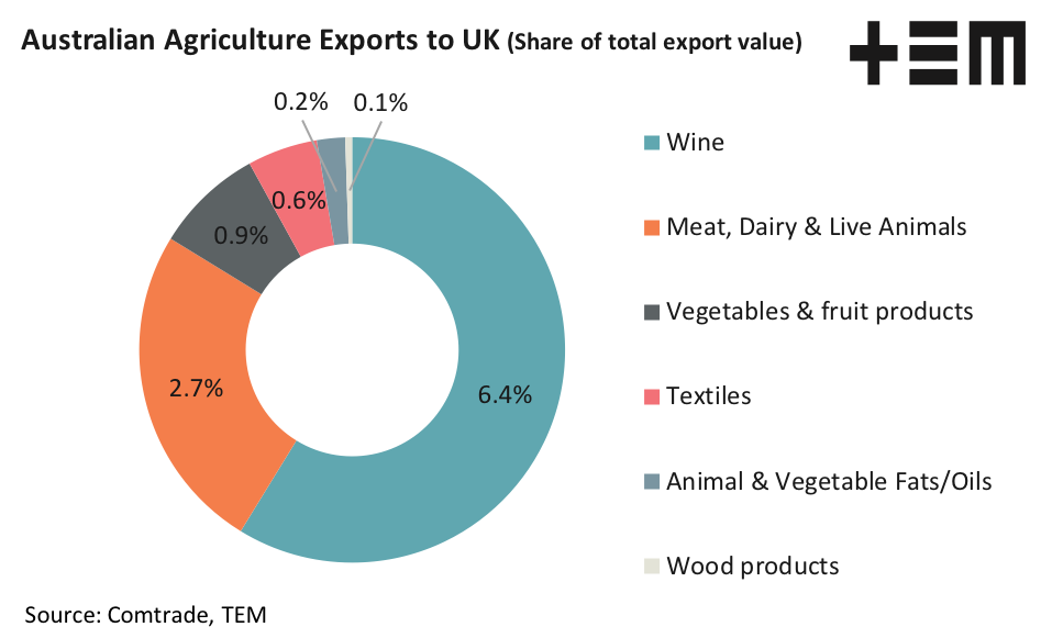 - Wine is the lead agricultural product exported to the UK, averaging 6% of the total export trade value over the last five years.