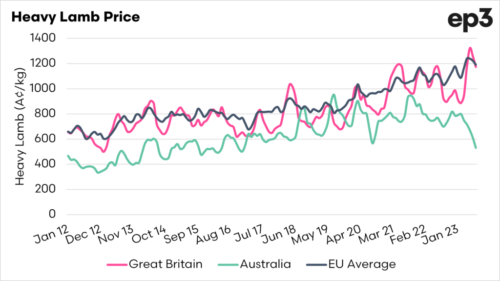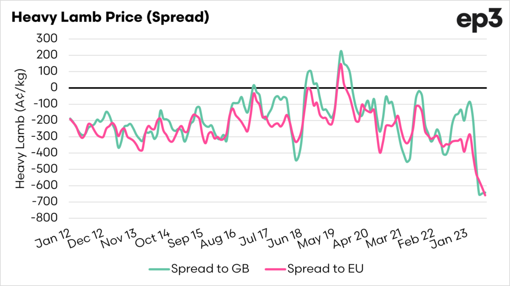 The discount for Australian lamb is at the highest level since at least 2012, which is frustrating after having made such good progress on pricing in recent years.