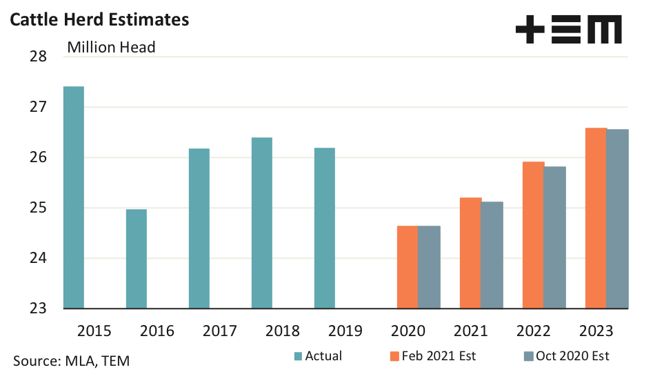 Meat and Livestock Australia (MLA) have released their February 2021 cattle market projections and it shows a faster pace of herd rebuild is anticipated, compared to the estimates from their October 2020 cattle market report.