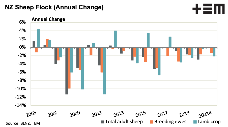 However, the BLNZ mid-season update for the 2021/22 season (released in March 2022) shows that the forecast Kiwi lamb crop has been revised down.