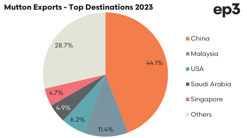 Given the strong demand seen in China for mutton in 2023 and the fact they account for so much of the trade it’s no wonder why export volumes are booming. In June China saw a slight 5% easing to 8,217 tonnes of mutton consigned. Despite the decline in the trade to China in June the volumes exported still managed to break all previous June records, so for anyone that is counting this will be the sixth consecutive month that the respective monthly record has been broken.