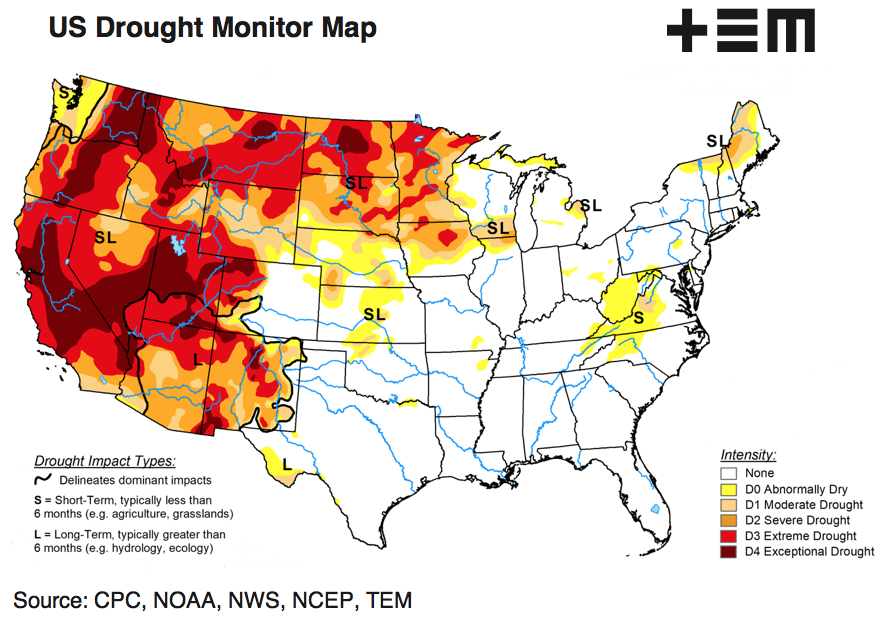 - Approximately 25% of the US beef cow herd is located in western states currently facing extreme drought conditions.