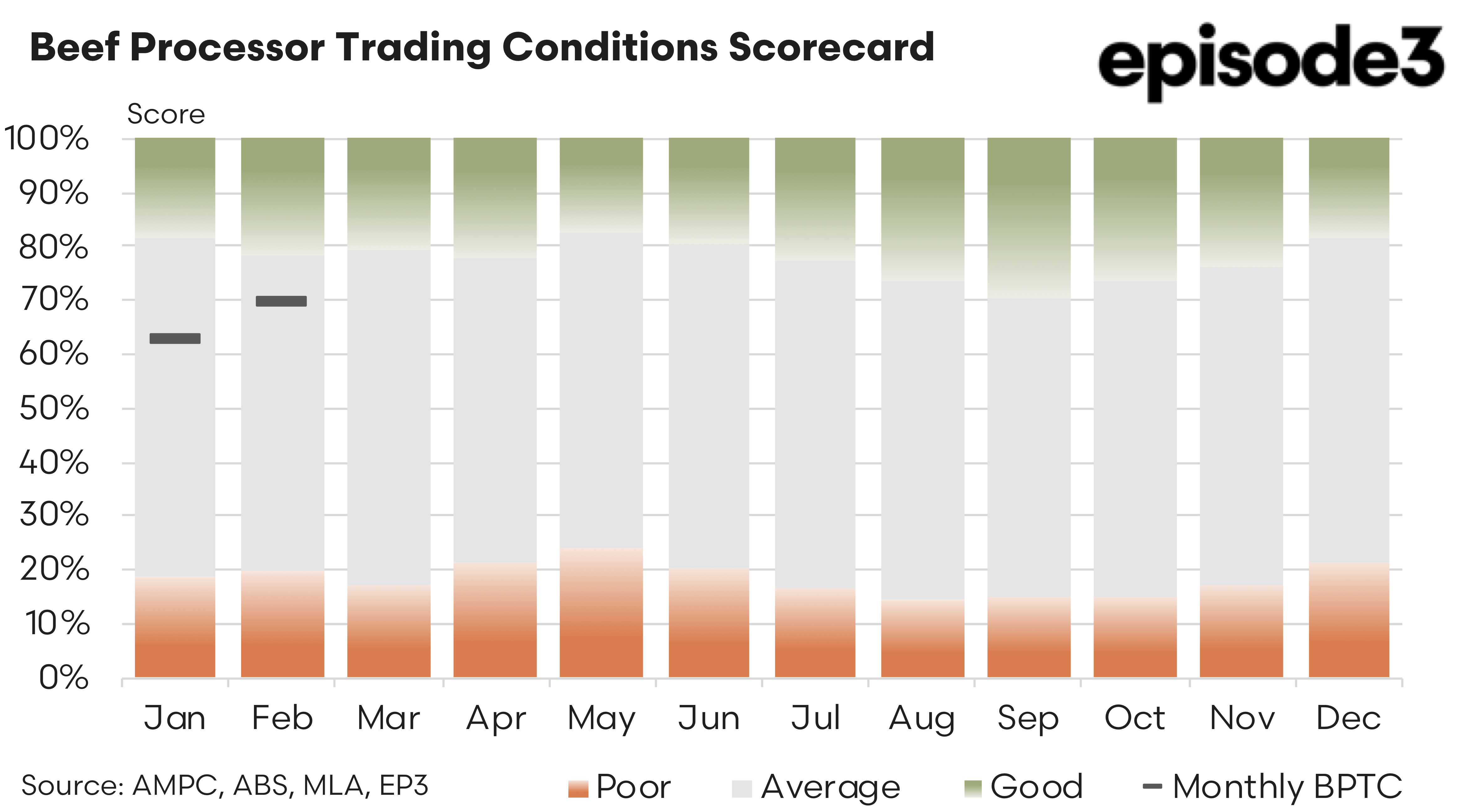 Unfortunately there have been some delays in the Meat & Livestock Australia reporting of co-product values beyond October 2024 so we are unable to assess additional receipts coming into processors from the sale of non-meat items. Once the data is available we will update the monthly BPTC retrospectively to realign the scores.