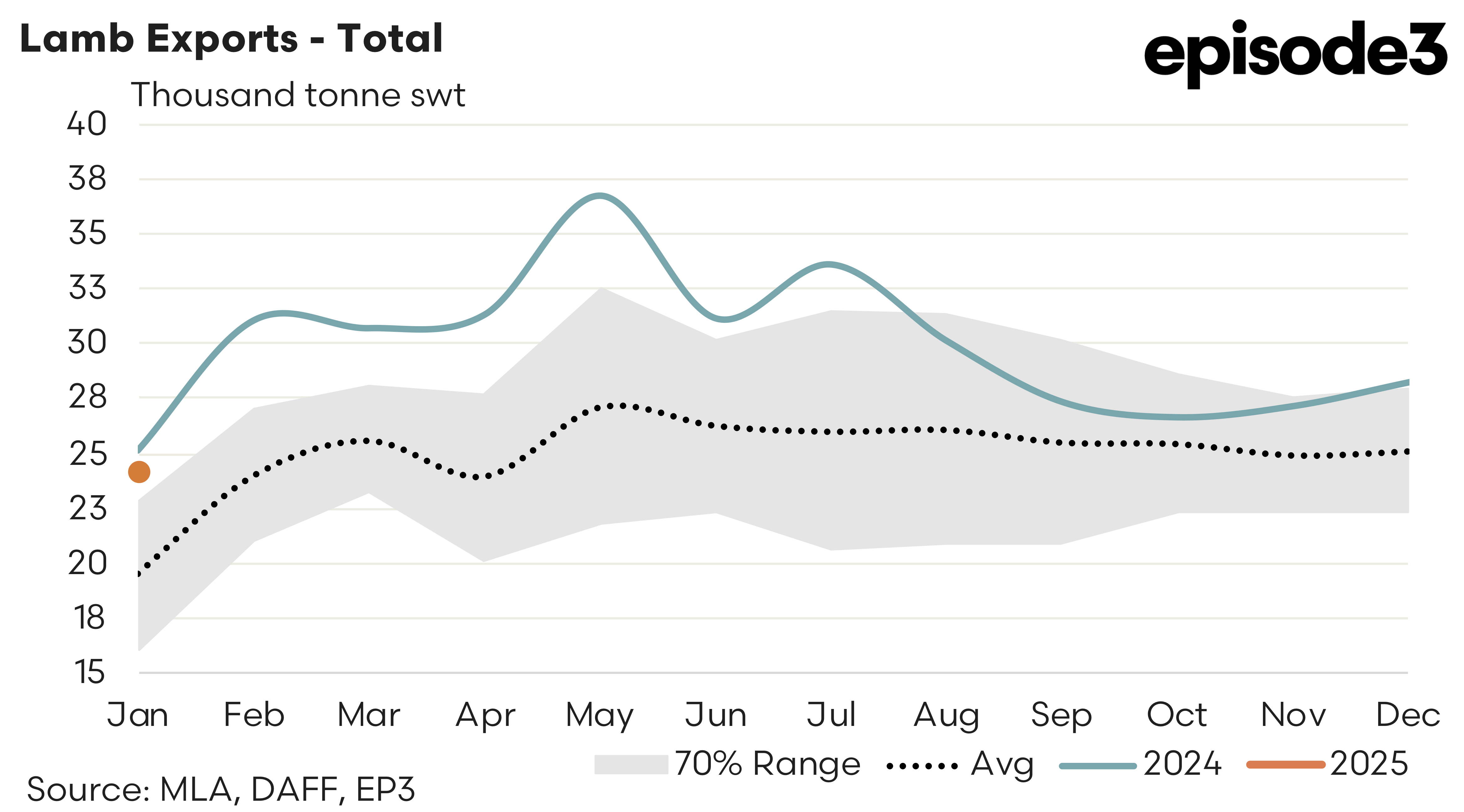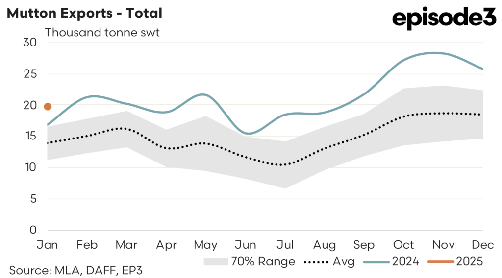 Trade export figures for January 2025 were released this week and show a good start to the season for Aussie mutton exports, meanwhile lamb exports also showed some green shoots in a handful of key markets.