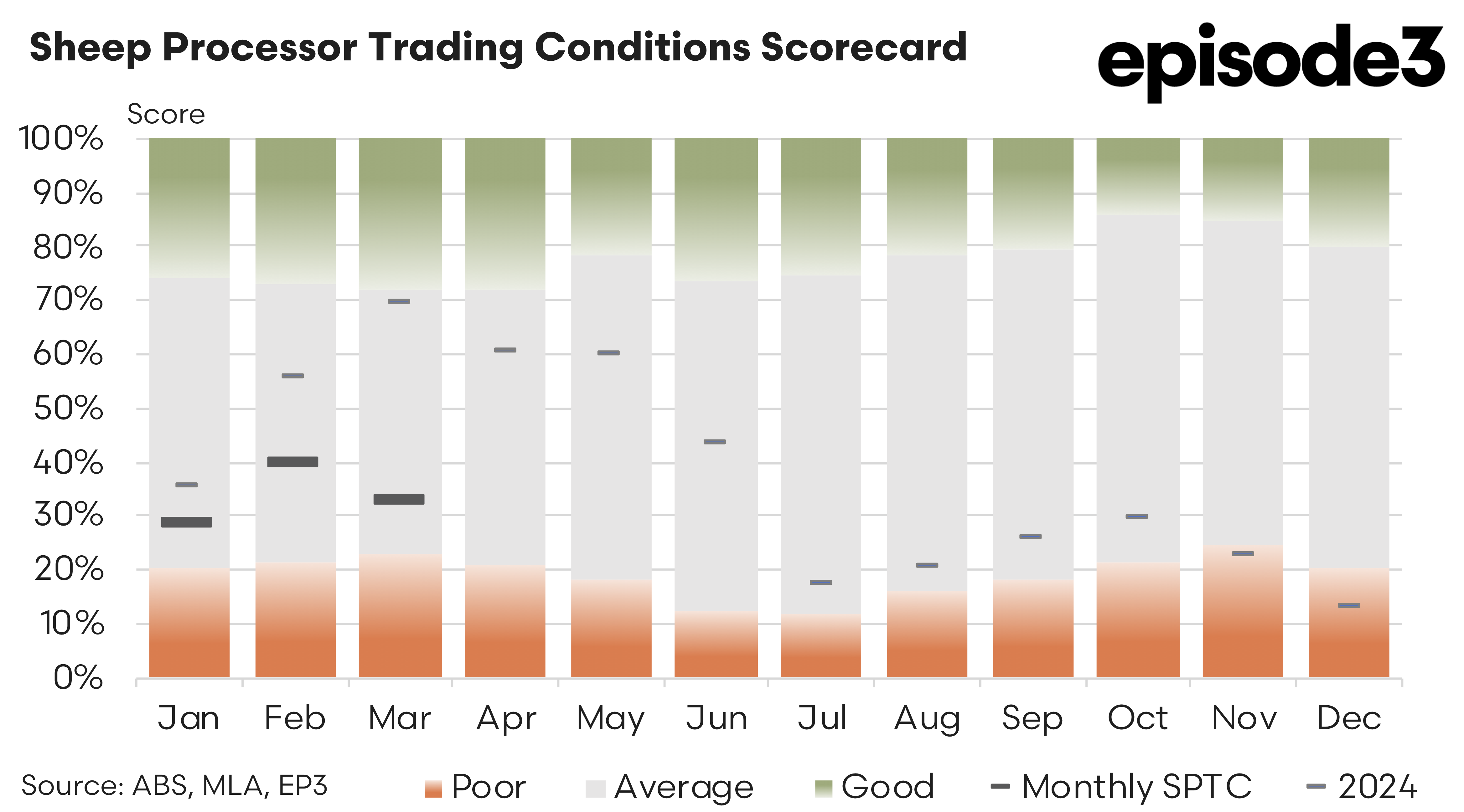 As a reminder, the SPTC is best understood in the same way farmers think about a rainfall decile chart. An SPTC score near 90% would indicate booming processing conditions, strong profitability, and healthy operating margins, akin to a bumper season after excellent rainfall. In contrast, a score around 30% reflects a patchy and uncertain environment, much like a light drought. Margins are thin, conditions are volatile, and caution dominates decision-making.