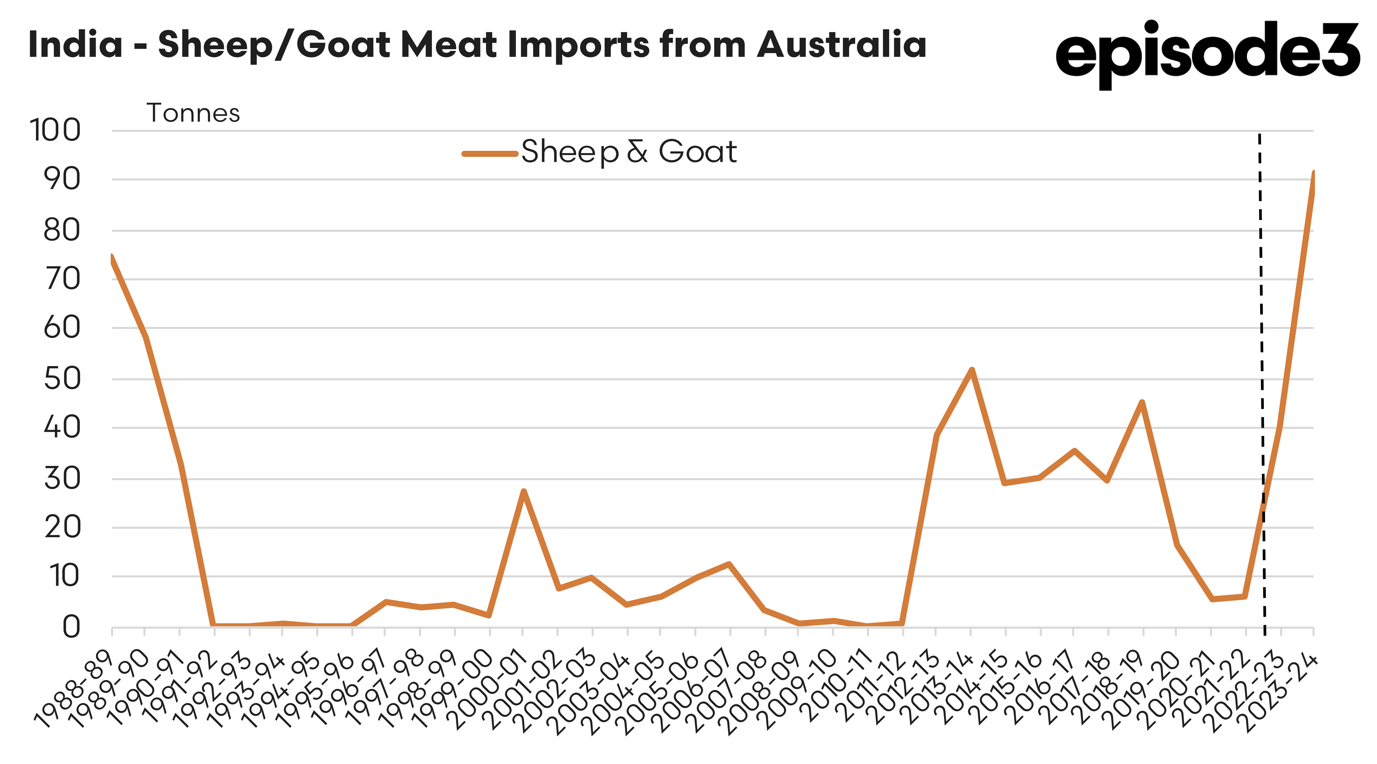 India has emerged as another promising market following the implementation of the Australia-India Economic Cooperation and Trade Agreement (ECTA) in December 2022. Although India’s volumes remain small relative to other markets, the growth trajectory for sheep/goat meat exports has been striking. Since the FTA came into effect, exports have increased by 128%, rising from just 40 tonnes to 91 tonnes. India’s massive population and rising per capita wealth suggest immense long-term potential for further trade. If carefully developed, India could become a market of similar importance to China, especially as consumer preferences shift and demand for quality red meat grows alongside rising incomes.