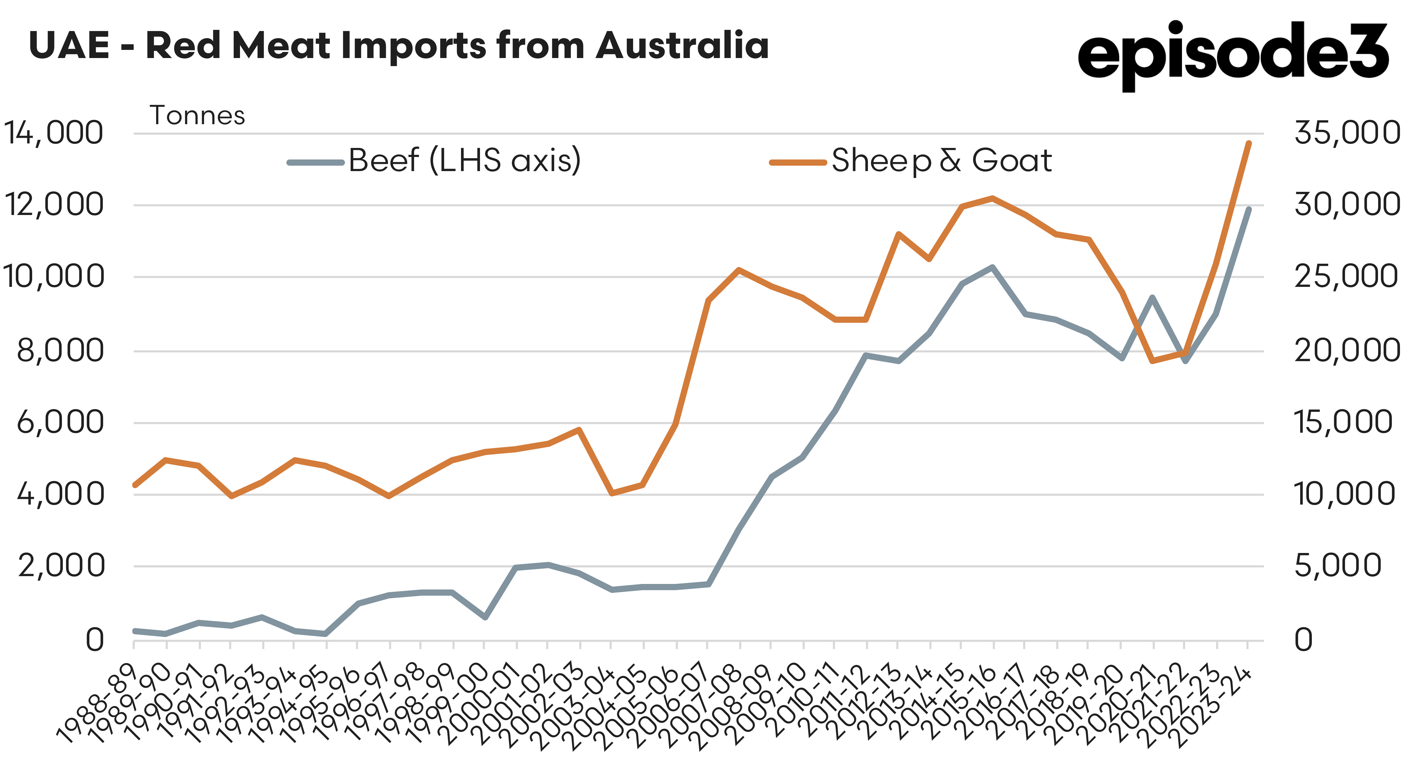 Looking forward, the UAE represents another emerging opportunity for Australian red meat exports, with an FTA set to commence in 2025. Even ahead of the agreement coming into force, Australian exports to the UAE have already increased by 33% in the last year, reflecting strong demand for both sheep meat and beef. Given the UAE’s strategic position as a gateway to the broader Middle East, the new FTA is expected to unlock further growth, particularly as the region’s demand for premium red meat continues to expand.