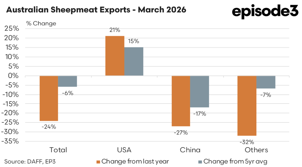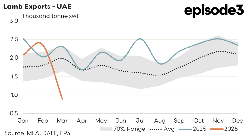 The March data highlights a market in transition. While total export volumes have eased, underlying demand in key markets such as the United States remains strong and continues to provide support. However, the sharp contraction in MENA trade flows has exposed the importance of regional diversification and the impact that access constraints can have on overall export performance. As the year progresses, the extent to which MENA demand recovers will be a key factor in determining whether total sheep meat exports can return to the elevated levels seen earlier in 2026.