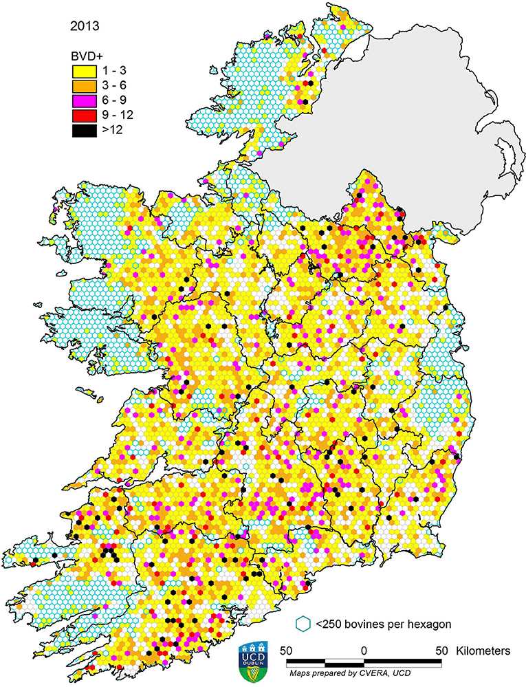 Ireland – A 2012 study involving a test, cull and vaccination program was examined in Ireland. An economic benefit of eradication was demonstrated as a result of this study. The benefit exceeded the costs by a factor of 14 in dairy herds and a factor of 5 in cow-calf herds. The total eradication costs were estimated at EUR 55 million. The payback period was calculated to be 1.2 (cow/calf) and 0.4 years (dairy). A mandatory national Irish pestivirus eradication programme, coordinated by Animal Health Ireland, commenced in 2013 and has been successful in reducing the prevalence of the virus.