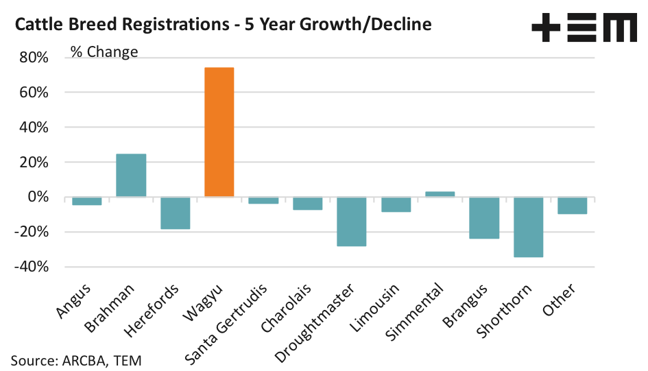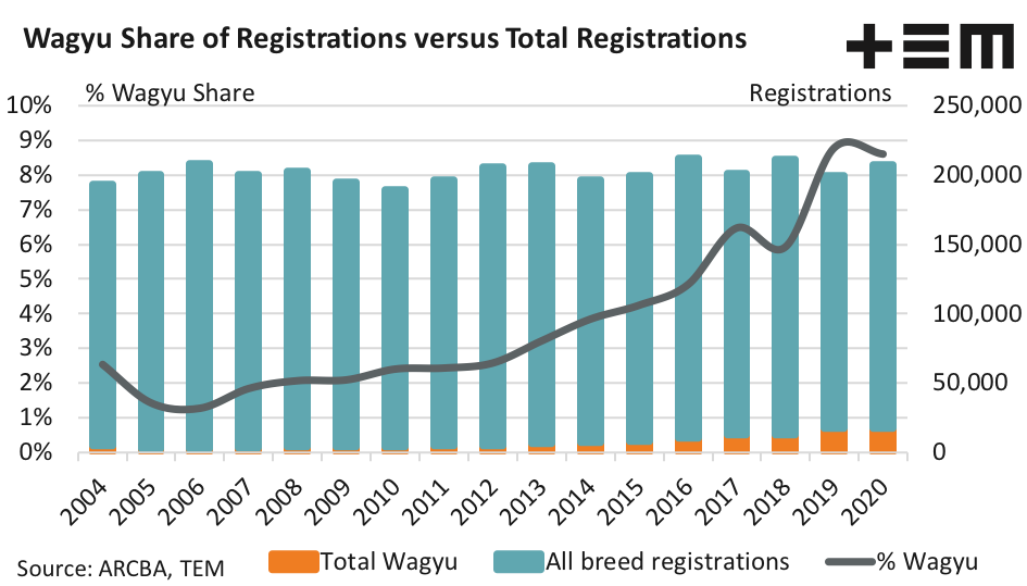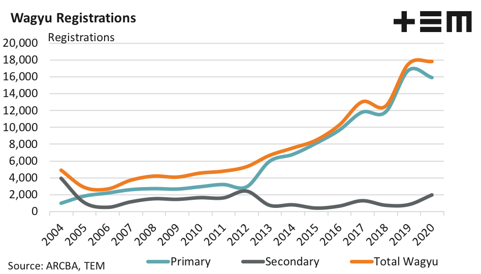 - Wagyu registrations have lifted by 74% over the 2016 to 2020 period.