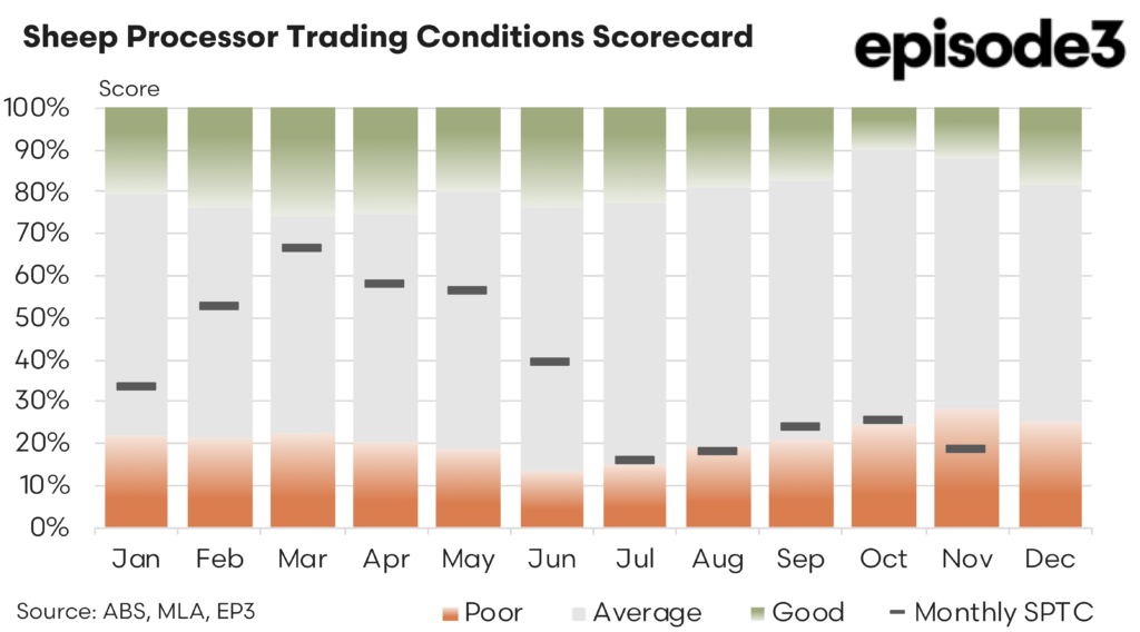 Regular readers will know that we report monthly on beef processor trading conditions via the use of a theoretical model developed by the team at Episode 3. Over the Christmas break we have constructed a similar model in order to track sheep processing trading conditions in Australia.