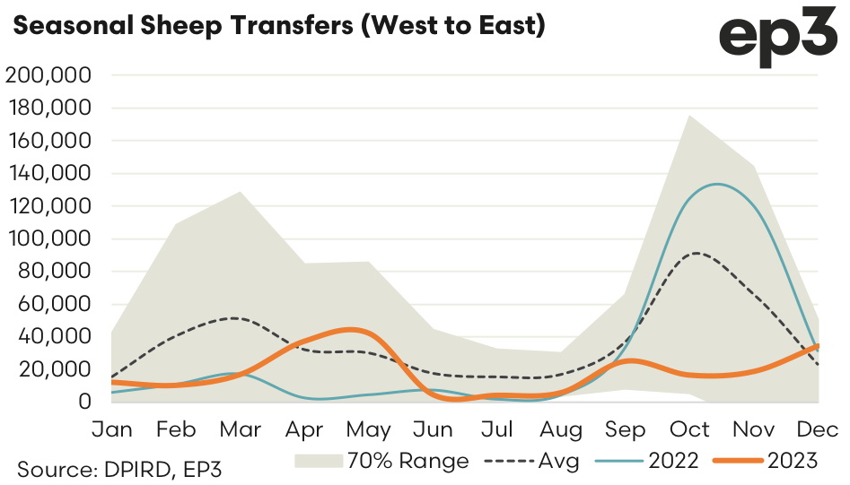 Interstate sheep and lamb transfer numbers from WA to the eastern states have been released for the end of 2023 and the combined monthly volumes for sheep and lamb transfers were a bit lacklustre for the final quarter of the year.