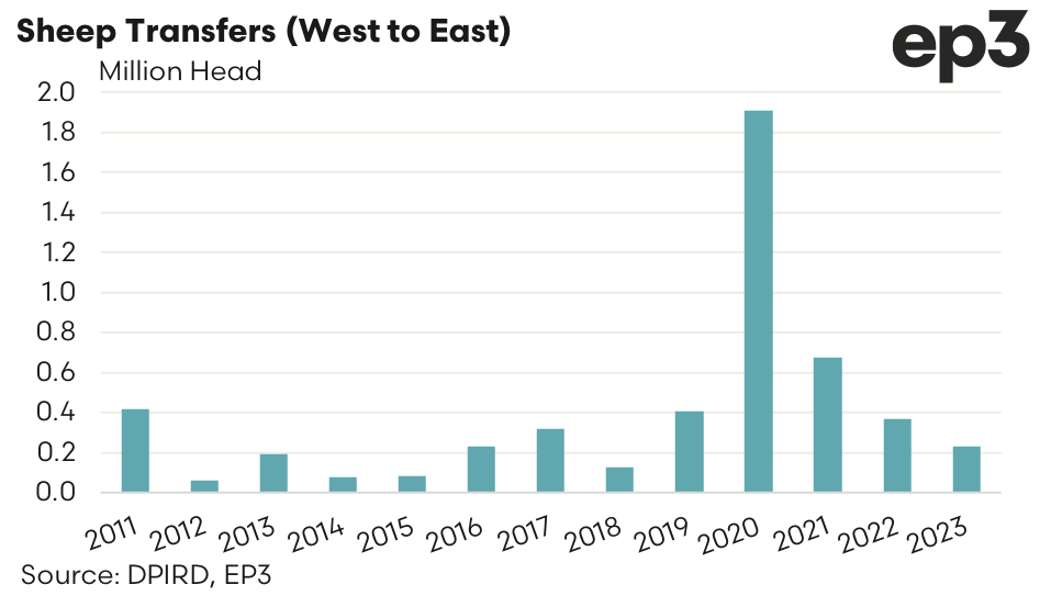 December 2023 managed to rival the volumes sent in 2022 at around 35,000 head and managed to get monthly transport volumes above the average pattern for the first time since May 2023.