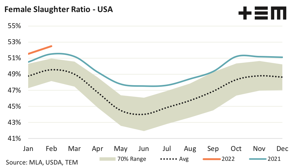 - The female slaughter ratio (FSR) in the USA has moved to the highest annual average level on record at 52%.