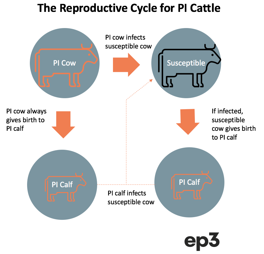 Breaking this cycle of infection between PI calves or older cattle and susceptible breeding age female cattle is critical to controlling the disease.