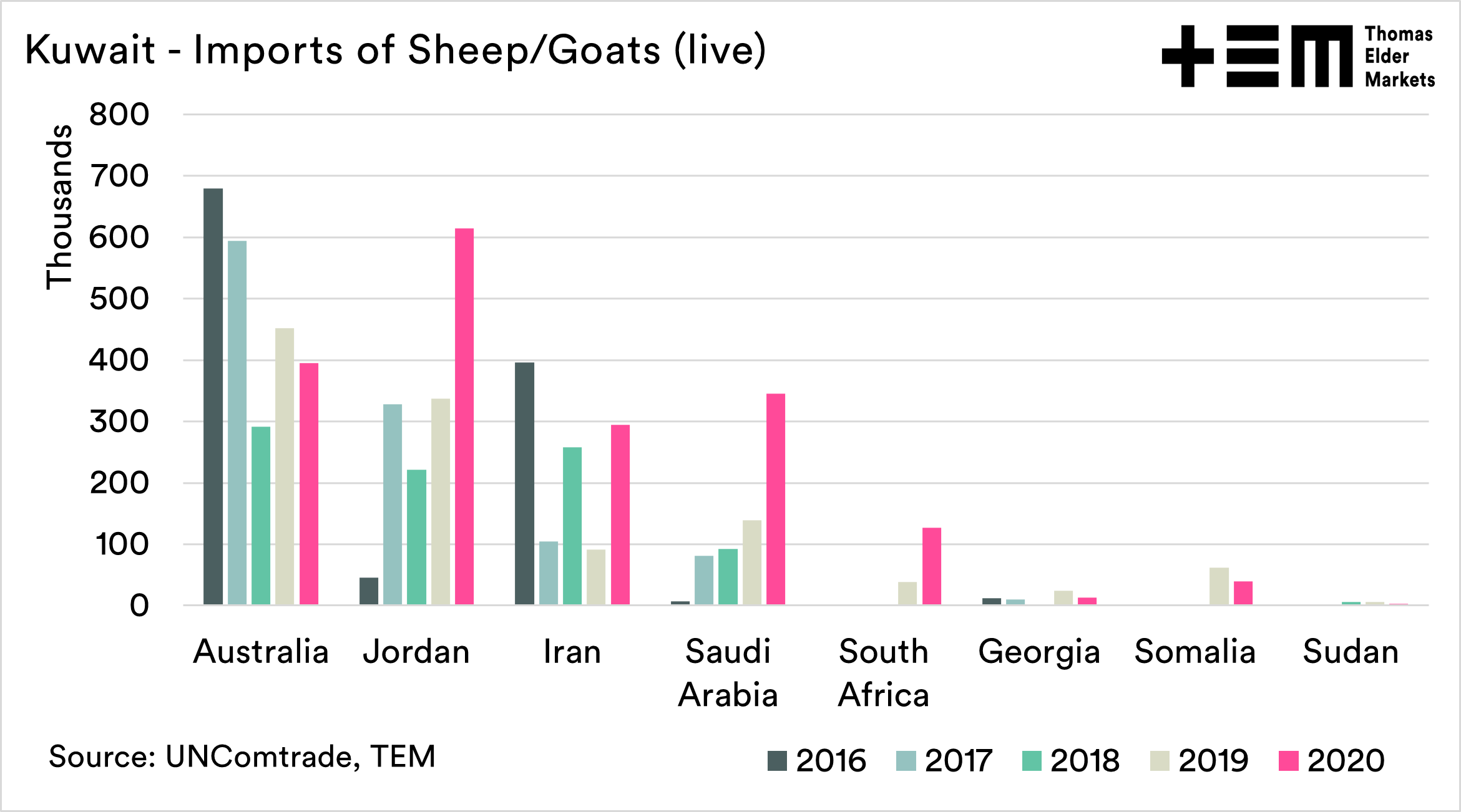 • Kuwait, as an example, did not stop importing live sheep/goats. They increased.