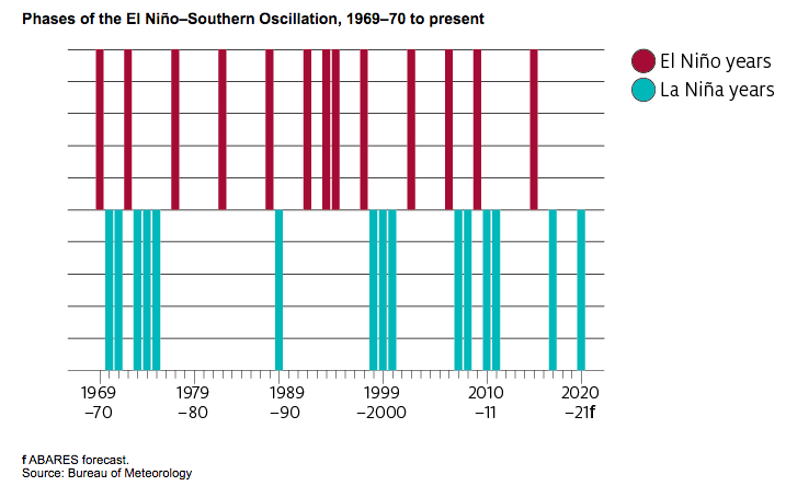 Recently, we were alerted to an insightful climate piece on the ABARES website that lends support to our concern for the chance of a El Nino inspired dry spell by the middle of the decade. The ABARES seasonal climate update outlines that the medium term outlook suggests that there is a high chance of at least one year in the next two to five years reverting to drought conditions.