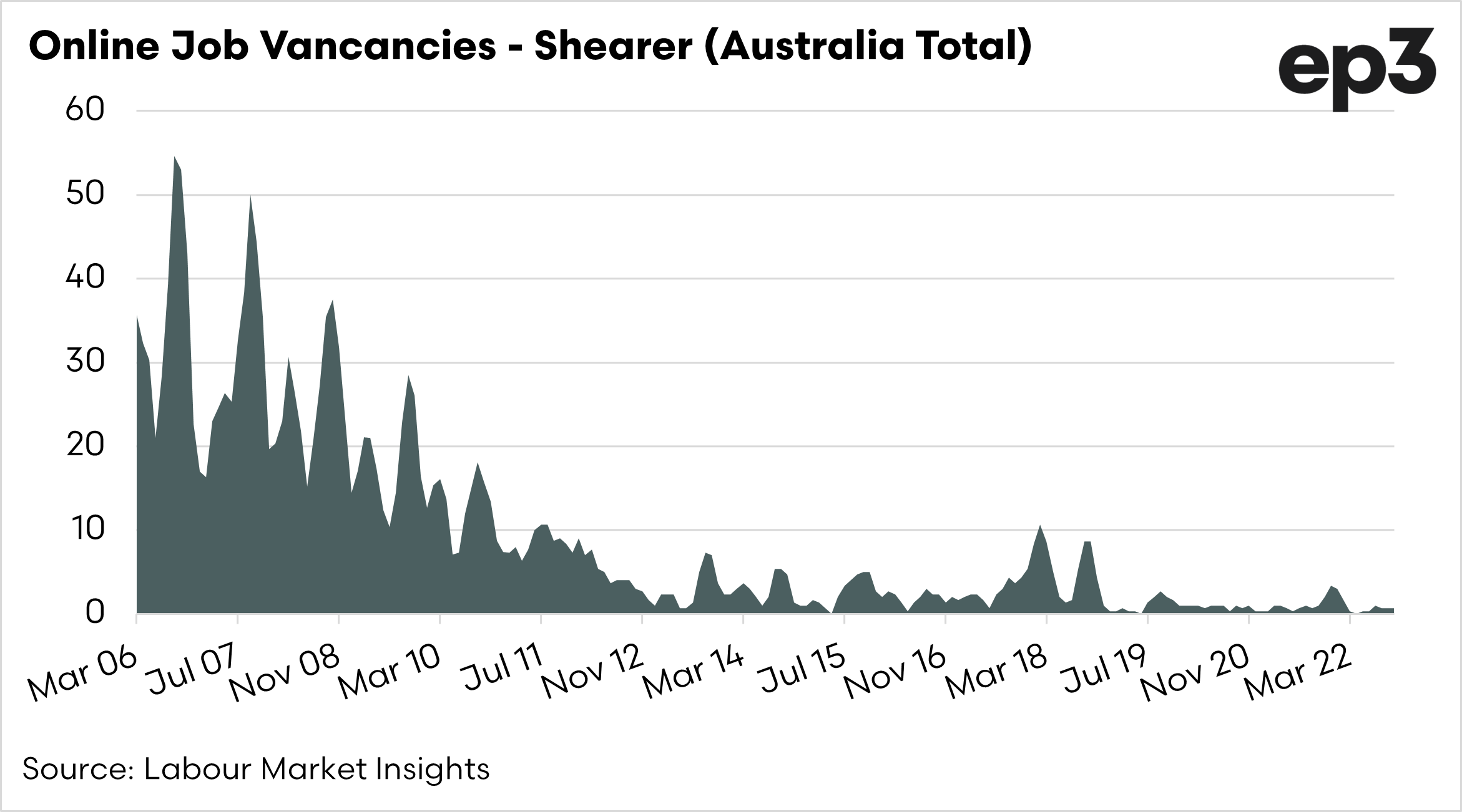 So shearers, an agricultural position massively in demand. The data should show a massive increase in the number of advertisements for workers.