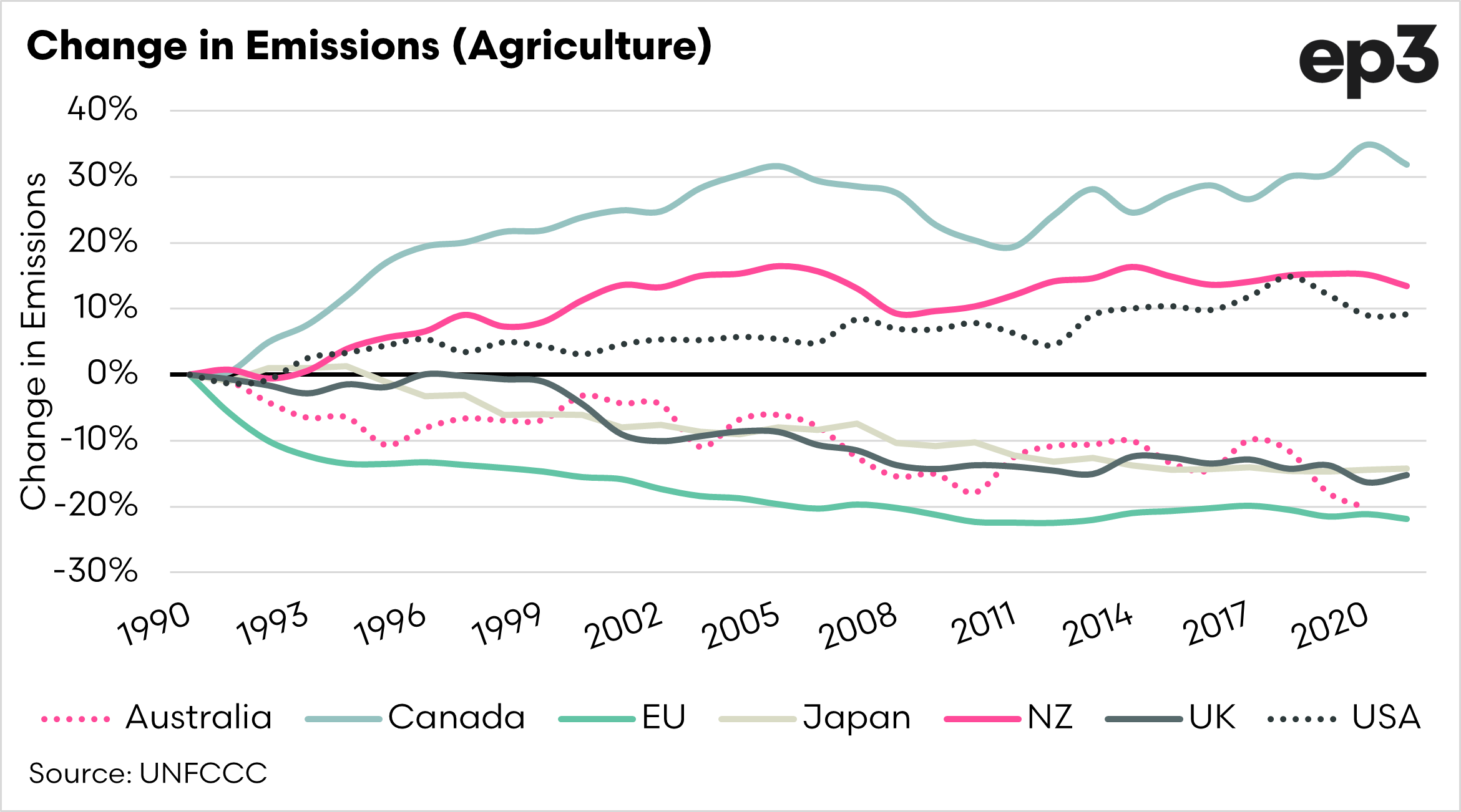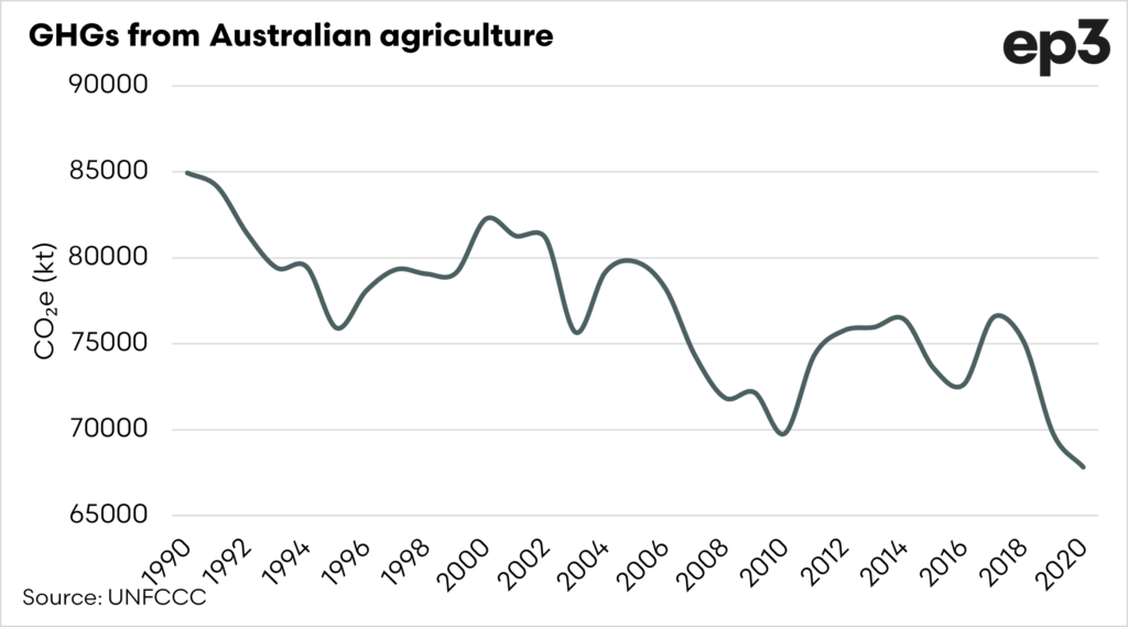 - Australian ag emissions have dropped 20% since 1990.